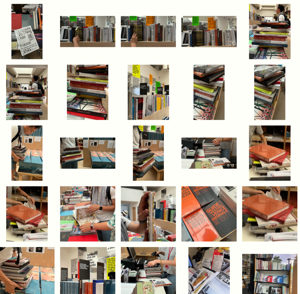 서울리딩룸 운영진 중 박재용, 서새롬은 2022, 2023, 2024년 3년간 베니스 (미술) 비엔날레, 베니스 건축 비엔날레, 베니스 (미술) 비엔날레를 방문해 매년 1-2주간 머무르며 현지에서 열리는 모든 전시를 최대한 많이 관람하는 도전을 감행했습니다. 더 많은 사람들과 “오프투베니스”(링크) 팀을 이뤄 도전했고, 그 과정에서 수집하고 구매한 도록과 종이쪽들을 2-3박스씩 한국으로 보냈습니다.