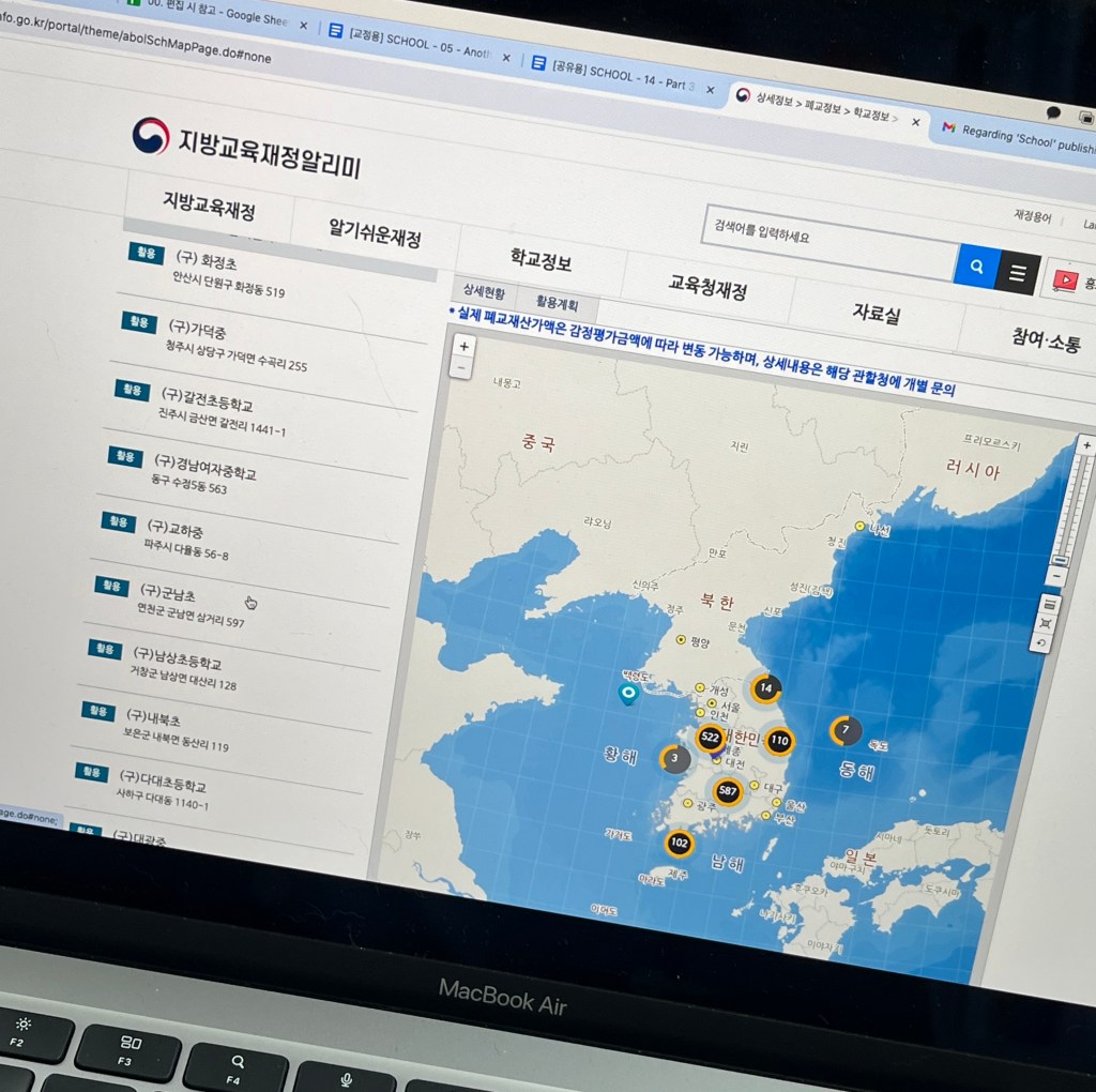 한국에는 “지방재정교육알리미” 웹사이트에서 폐교 현황을 확인할 수 있습니다.